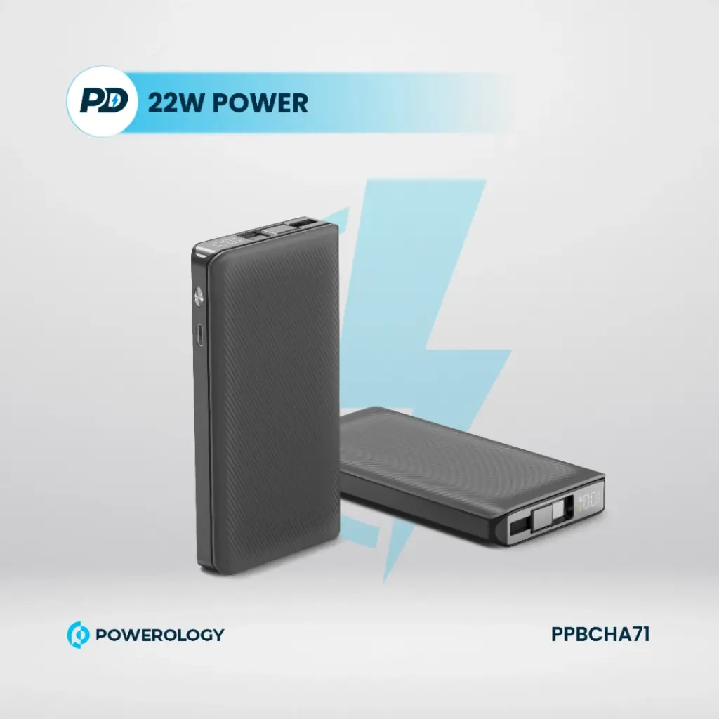 پاوربانک پاورولوژی مدل Powerology 10000mAh (ppbcha71)با کابل جمعشونده | شارژ سریع PD، همیشه آماده